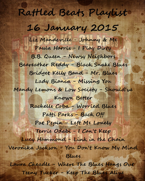 Tonight’s Show will be featuring the Women in Blues, those who will be participating in the Women in Blues Showcase on 23 January 2015 in Memphis TN. Such as Liz Mandeville, B.B. Queen, Rachelle Coba, Pat Pepin, Paula Harris, Beareather Reddy, Bridget Kelly Band, Ladee Bianca, Mandy Lemons & Low Society, Patti Parks, Terrie Odabi, Lucy Hammond, Veronika Jackson, Teeny Tucker, and Laura Cheadle. The complete playlist for the Rattled Beats Show and Memphis awaits for your arrival to see the upcoming Women in Blues Showcase on 23rd January.